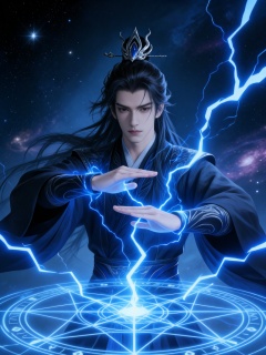 玄青角色, 青年男子身着深蓝古风长袍,头戴银冠嵌蓝晶,长发飞扬。中景构图,双手结印于胸前,掌 - 2026-02-27 19:38:02