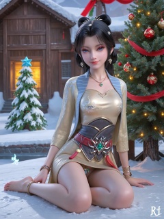 score_9,score_8_up,score_7_up,masterpiece,(best quality),(intricate details:0.9) BREAK (intricate details:0.9),(realistic skin:1.2),masterpiece,best quality,newest,absurdres,hiahres,1girl,jewelry,hair ornament,dress,necklace,lips,eyeshadow,bracelet,tassel,(8k ultra-clear, pony style),photo pose 0.6, micro-expression: soft smile 0.3, half-body + medium shot 0.7,1girl,looking_at_viewer,1boy,hair,realistic,photorealistic,Vivid Colors,bright environment,shiny skin,shiny hairjewelry,detail eyes,Eyes highlights,glowing,sunshine,bright,reflection,bright,sunshine on face,shiny,shinny,petite,thin,leg slimming,lose weight,slim hips,lakeside,delicate water,reflection,(full body:1.2)sitting_down,eyelashes,snow,Winter,Snowy landscape,Snow accumulation,Christmas tree,black-hair,