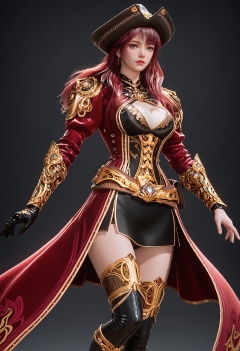 (upper_body:1.2),score_9,score_8_up,masterpiece,(best quality),intricate details,facing viewer,(looking at viewer:1.1),<lora:YQ_pony_menghongchen_V4:0.8>,q1528437228,solo,1girl,hat,long hair,red hair,boots,thighhighs,blue eyes,gloves,thigh boots,skirt,armor,pink hair,jewelry,belt,brown hair,pirate hat,earrings,coat,high heels,red coat,black gloves,grey eyes,dress,miniskirt,black eyes,black footwear,high heel boots,black headwear,long sleeves,single glove,BREAKscore_9,score_8_up,masterpiece,(best quality),perfect anatomy,(hourglass),perfect face,(simple background,pure black background,black background:1.1),fair_skin,shiny_skin,Ivory_skin,