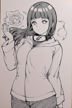 alp Style,1girl,monochrome,greyscale,hyuuga hinata,solo,long hair,looking at viewer,forehead protector,konohagakure symbol,sketch,long sleeves,blunt bangs,magic,closed mouth,hand up,traditional media,hatching,<lora:alp_illustriousXL:1.2>,