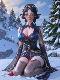 score_9,score_8_up,score_7_up,masterpiece,(best quality),(intricate details:0.9) BREAK (intricate details:0.9),(realistic skin:1.2),masterpiece,best quality,newest,absurdres,hiahres,1girl,jewelry,hair ornament,dress,necklace,lips,eyeshadow,bracelet,tassel,(8k ultra-clear, pony style),photo pose 0.6, micro-expression: soft smile 0.3, half-body + medium shot 0.7,1girl,looking_at_viewer,1boy,hair,realistic,photorealistic,Vivid Colors,bright environment,shiny skin,shiny hairjewelry,detail eyes,Eyes highlights,glowing,sunshine,bright,reflection,bright,sunshine on face,shiny,shinny,petite,thin,leg slimming,lose weight,slim hips,lakeside,delicate water,reflection,(full body:1.2)sitting_down,eyelashes,snow,Winter,Snowy landscape,Snow accumulation,Christmas tree,(huge breasts:1),veil,thighhighs,