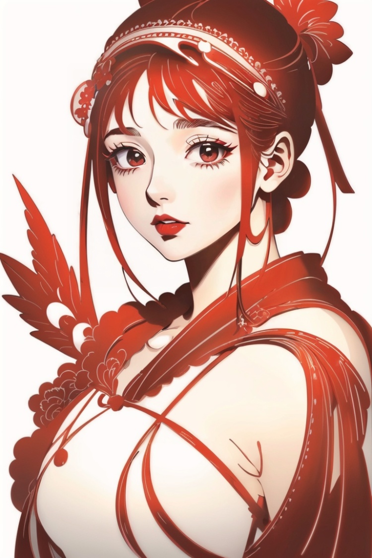 monochrome, red theme, white background, simplebackground,