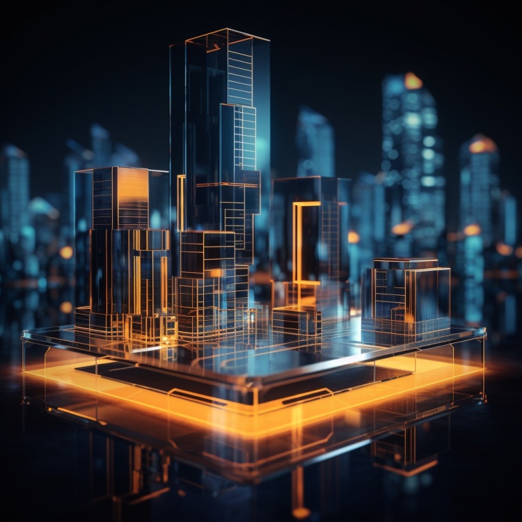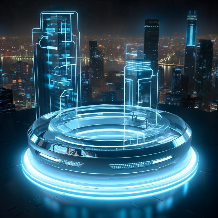 展台:(masterpiece, top quality, best quality, official art, beautiful andaesthetic:1.2),saibofeng,podidum,building,bluetheme,light