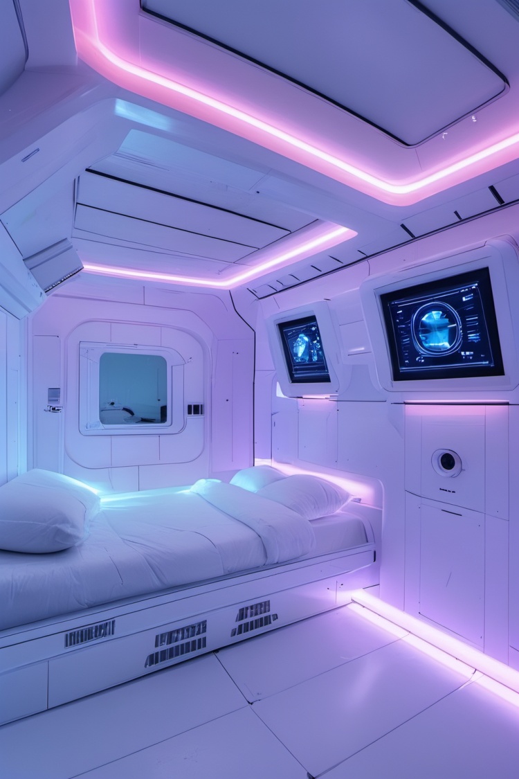 提示词推荐:room(房间),neonlights(霓虹灯),bed(床),pillow(枕头),sofa(沙发),sheets(床单)