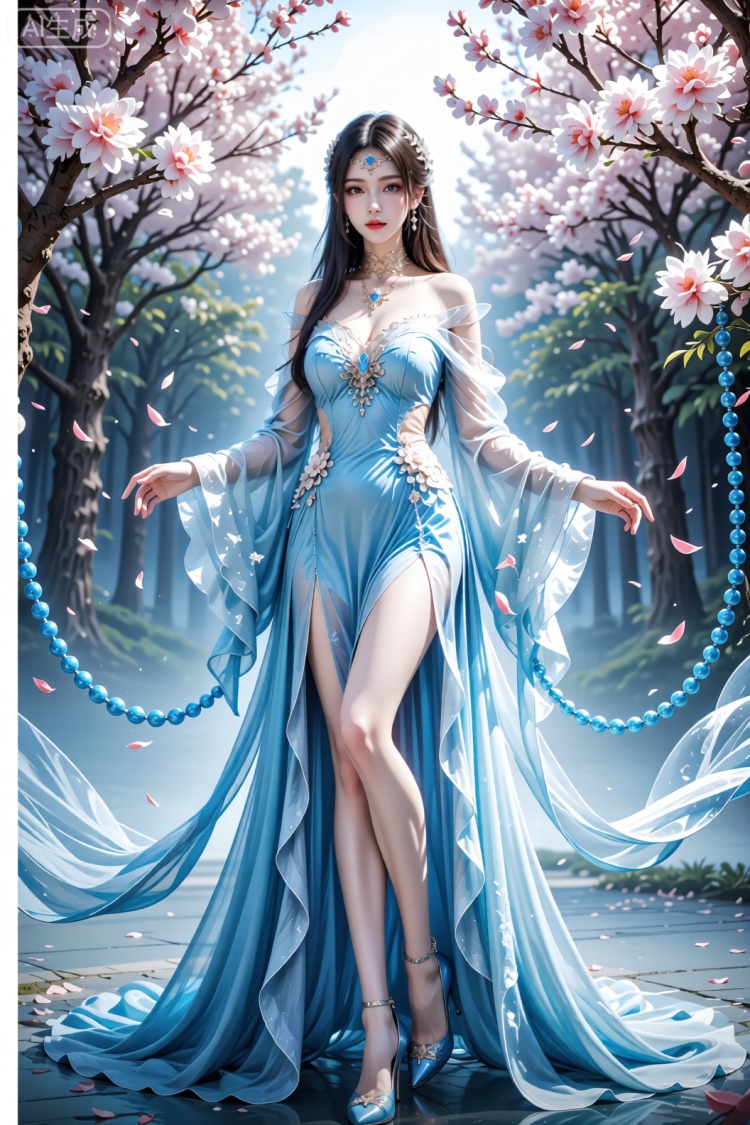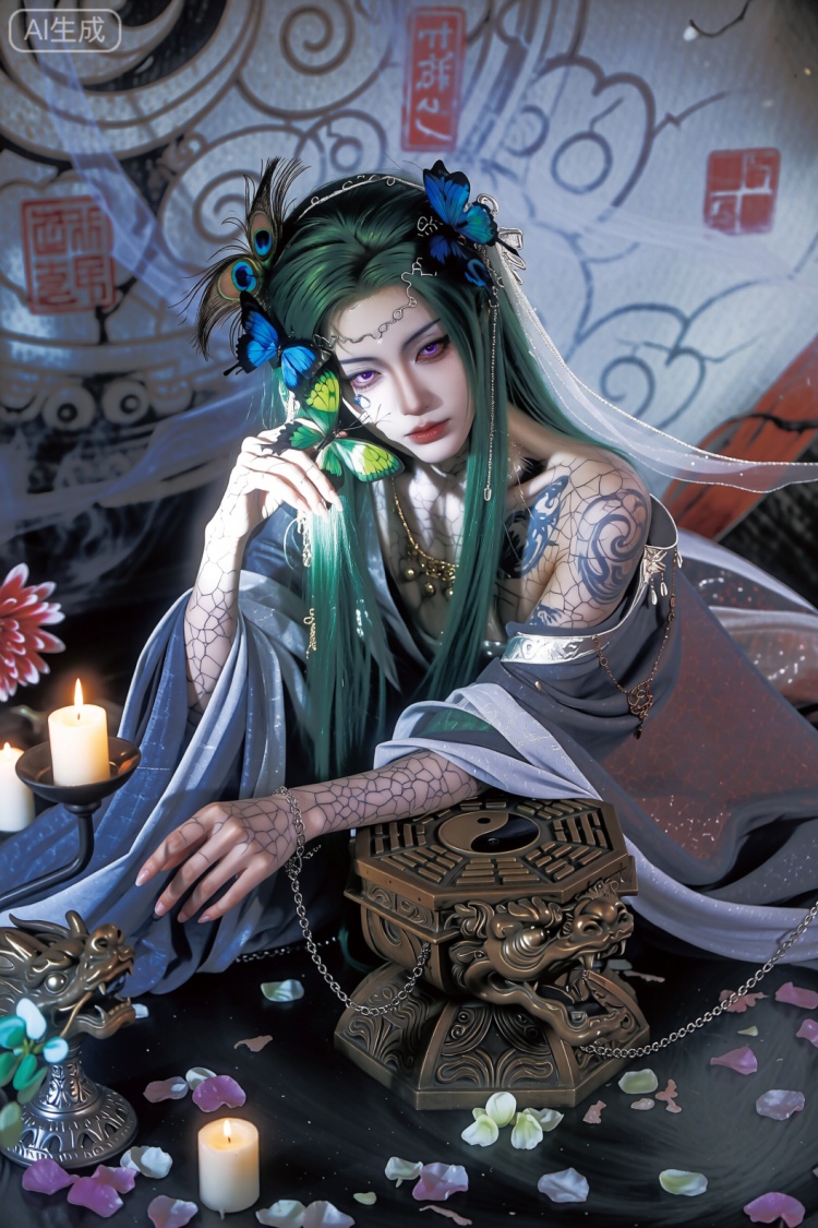 图中女子身着水墨书法旗袍,以轻薄绡纱为载体,将狂草书法的笔走龙蛇融于衣袂之间,传统盘扣点缀领口,开衩设计暗合现代审美,让东方女性的温婉与前卫时尚碰撞出独特火花。