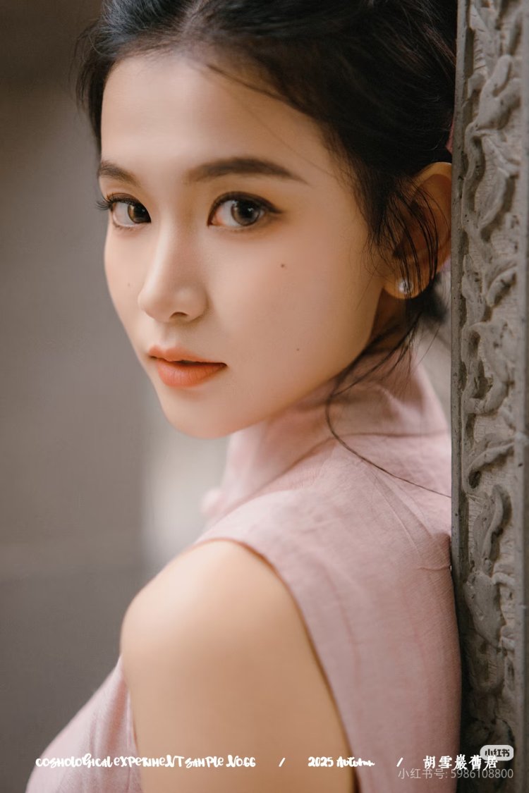 :一位年轻女性的面部。她的姿态自然,一手轻抚发丝, 一手轻拉裙摆,眼神略带迷离,随后女孩脱掉衣服露出性感的裸体,跪倒地上,头部朝下,臀部微微向上拱起,双手放在面前的地面上。将衣服折叠整齐的摆放在女生的身边随后女生比出v手势.整体氛围轻松自然。视频全程女生的脸部特征与第一帧保持一致The video shows the face of a young woman. Her posture is natural, one hand lightly touching her hair, the other gently pulling at her skirt, her eyes slightly unfocused. The girl then removes her clothes, revealing her sexy naked body, kneels on the ground, head down, hips slightly arched upwards, hands placed on the ground in front of her. Her clothes are neatly folded and placed beside her. The girl then makes a V-sign. The overall atmosphere is relaxed and natural. Throughout the video, the girl's facial features remain consistent with the first frame.