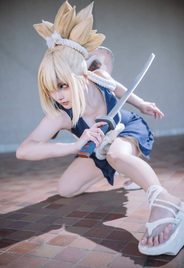 Her outfit is bottomless and she has no panties so her vagina is uncovered.