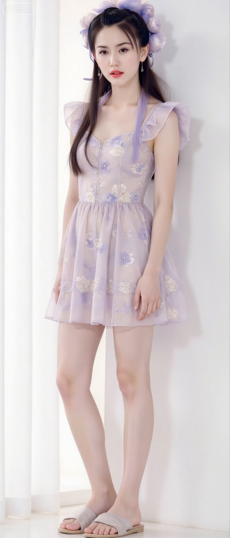 She wears a pink t-shirt and short denim pants, with beautifully detailed eyes and natural lips. The illustration should have high resolution and be suitable for an 8K wallpaper, capturing every fine detail and texture.