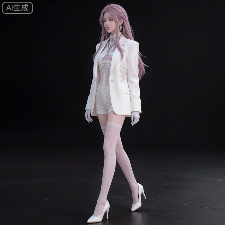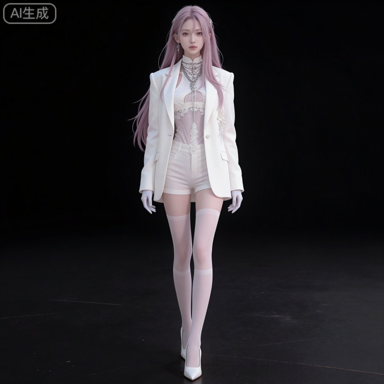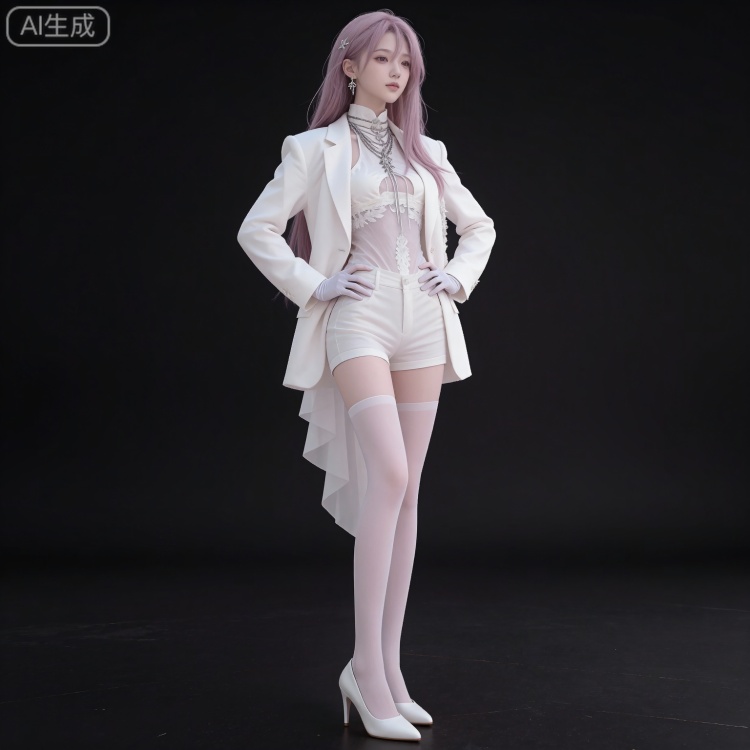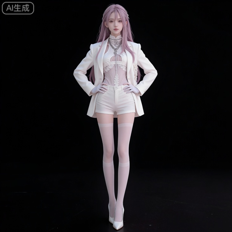 服装正确提示词(必填):mumu center frills, mumu high-waist shorts, mumu white jacket, mumu white shirt, mumu white thighhighs, mumu white gloves, mumu white shorts,