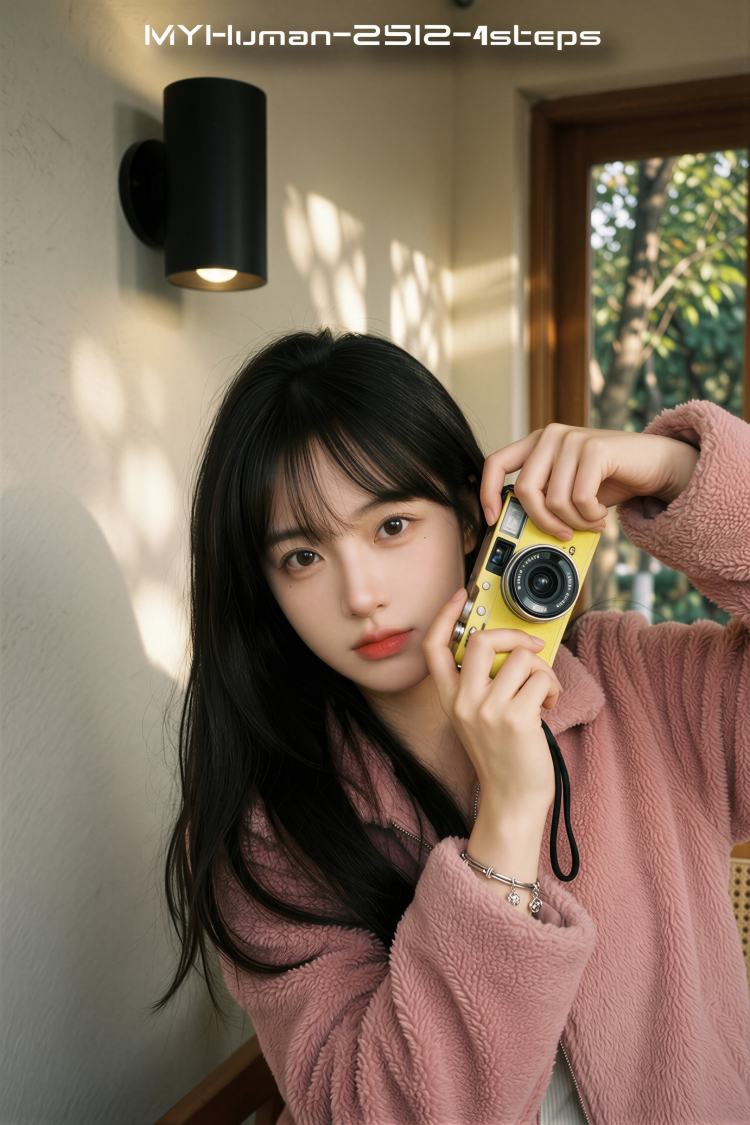 MYHuman墨幽人造人QWen2512-lightning-4steps-BF16是一款基于qwen image2512 微调融合的模型,模型采用分布式多段训练、融合、差分后实现无污染的多风格、多品类、多概念的并存,并使用qwen2.5vl进行标注与clip完全对齐。 该版本只能使用bf16(fp8是坏的,fp8模式也不行)!!!,需要40g显存运行。 如果您更注重模型是纯微调还是融合,那您可以选择其他模型。 如果您注重的是最终效果和稳定性,那墨幽系列一定是您最好的选择。 模型特点- 支持直出2k分辨率的千问2512模型。 - 4步高速出片(不需要4步加速lora) - 卓越的人像生成能力: 对男女老幼、单人多人均可自由响应。 - 广泛的适用性:涵盖多质感,多风格,以及多种特殊构图,和中英文海报皆可实现批量稳定成图。 - 简单易用: 中文描述即可,也可使用反推。响应能力出色。 本地使用建议:该版本只能使用bf16(fp8是坏的,FP8模式也不行),需要40g显存运行。comfyui下拉菜单中选择“浏览模板”,找到Qwen image 2512的模板工作流使用。 请使用中文长提示词以达到更好的效果。 采样器:euler 调度器:simple 步数:4(不需要添加4步加速lora!!!) CFG :1 模型采样算法AuraFlow偏移:3.1 建议分辨率:1328x1328、928x1664、1104x1472、1056x1584、1280×1920(以上分辨率横竖皆可) 提示词示例: 这张图片以柔和自然光线为基调,呈现一位女性模特在石材建筑台阶前的写真创作。画面采用中距镜头平拍视角,通过较高ISO值和较慢快门速度捕捉到温暖色调的光线效果,整体氛围宁静且富有艺术感。模特面部表情平静从容,大而明亮的眼睛直视前方,挺拔的鼻梁与红色口红唇型构成精致五官,白皙皮肤上未见任何痣迹,展现出自信的神态。发型处理上,模特留着深棕色长发,发尾自然垂落于肩部,头顶位置佩戴珍珠发饰,值得注意的是该发饰设计未包含刘海元素。造型搭配上身着白色短袖蕾丝连衣裙,轻盈面料贴合身形勾勒出流畅曲线,及膝裙长与蕾丝花纹细节相得益彰,左手所持白色链条包与服装色彩形成和谐呼应。构图布局中,模特占据画面中心偏左的视觉重心,身体正对镜头的站姿与自然垂落的双手强化了画面平衡感。背景采用金属栏杆与石材台阶的虚化处理,既突出了主体又保留了场景空间感,模糊的景深效果使人物与环境产生恰到好处的分离。通过精心设计的光线控制与景深处理,作品成功营造出优雅静谧的氛围。模特的服装造型与环境元素形成统一的视觉语言,珍珠发饰的点缀与蕾丝裙装的精致纹样相辅相成,展现出兼具自然美感与时尚张力的摄影表达。整幅作品在构图、色彩、质感等维度均体现出专业摄影水准,最终呈现效果既符合商业模特写真的专业要求,又保持了艺术创作的审美价值。 要是觉得不错还请多多返图支持,谢谢~ 如果您的技术力一般,通过本模型的加持可以让您比肩拥有高技术力的效果。 如需获取模型用于本地部署可加v:myhuman666 鹅群: 墨幽炼丹阁-太清阁:858495398 墨幽炼丹阁-上清阁:764481772 也请多多关注我的小红书和抖音账号:yy469370733