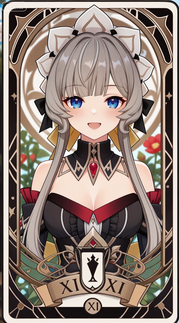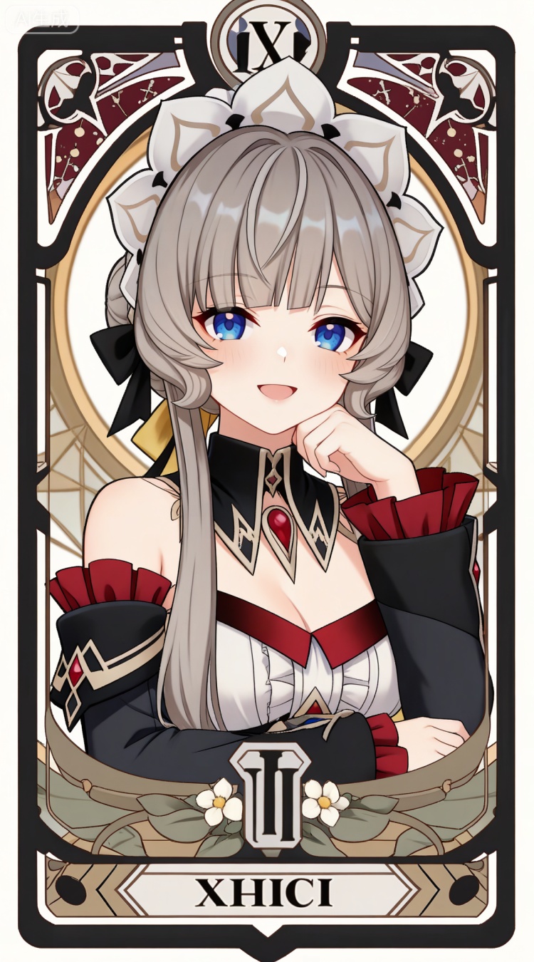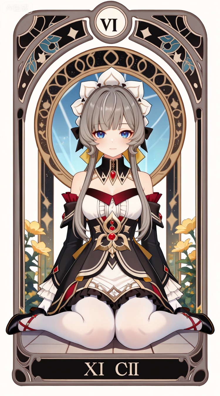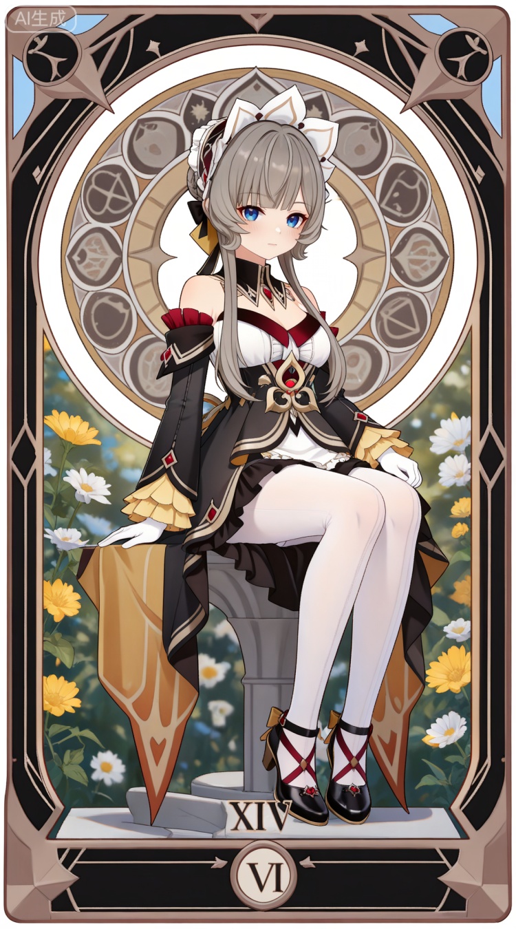 木偶基础提示词(必填):brown hair, grey hair, blue eyes, blunt bangs, braid, braided bun, detached collar, hair bow, headdress, maid headdress, hair bun, french braid, short hair with long locks, muou black and white dress, muou detached sleeves, muou frilled sleeves, muou white pantyhose, muou high heels, muou white gloves,