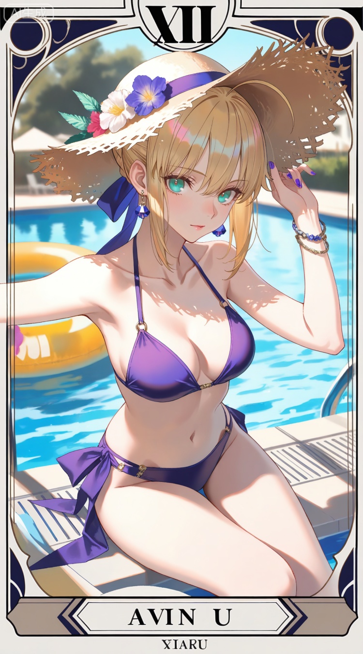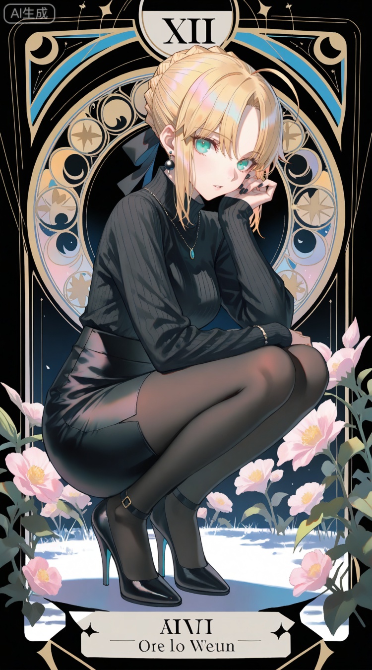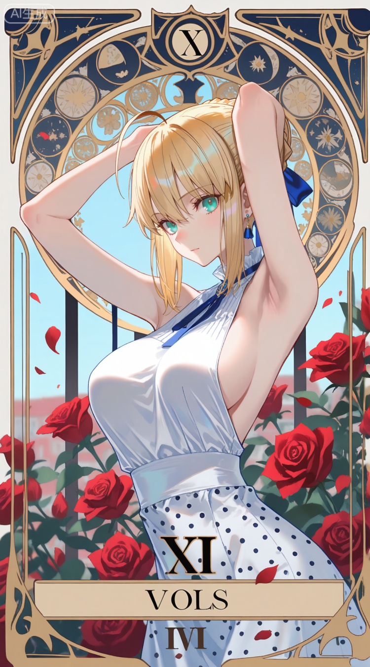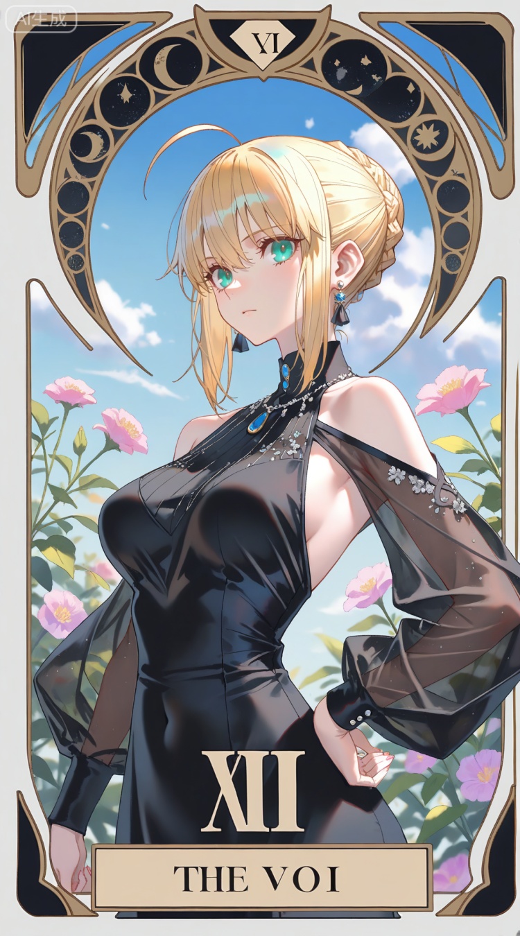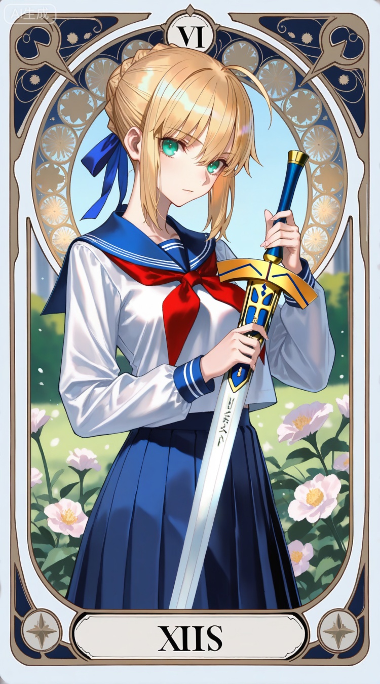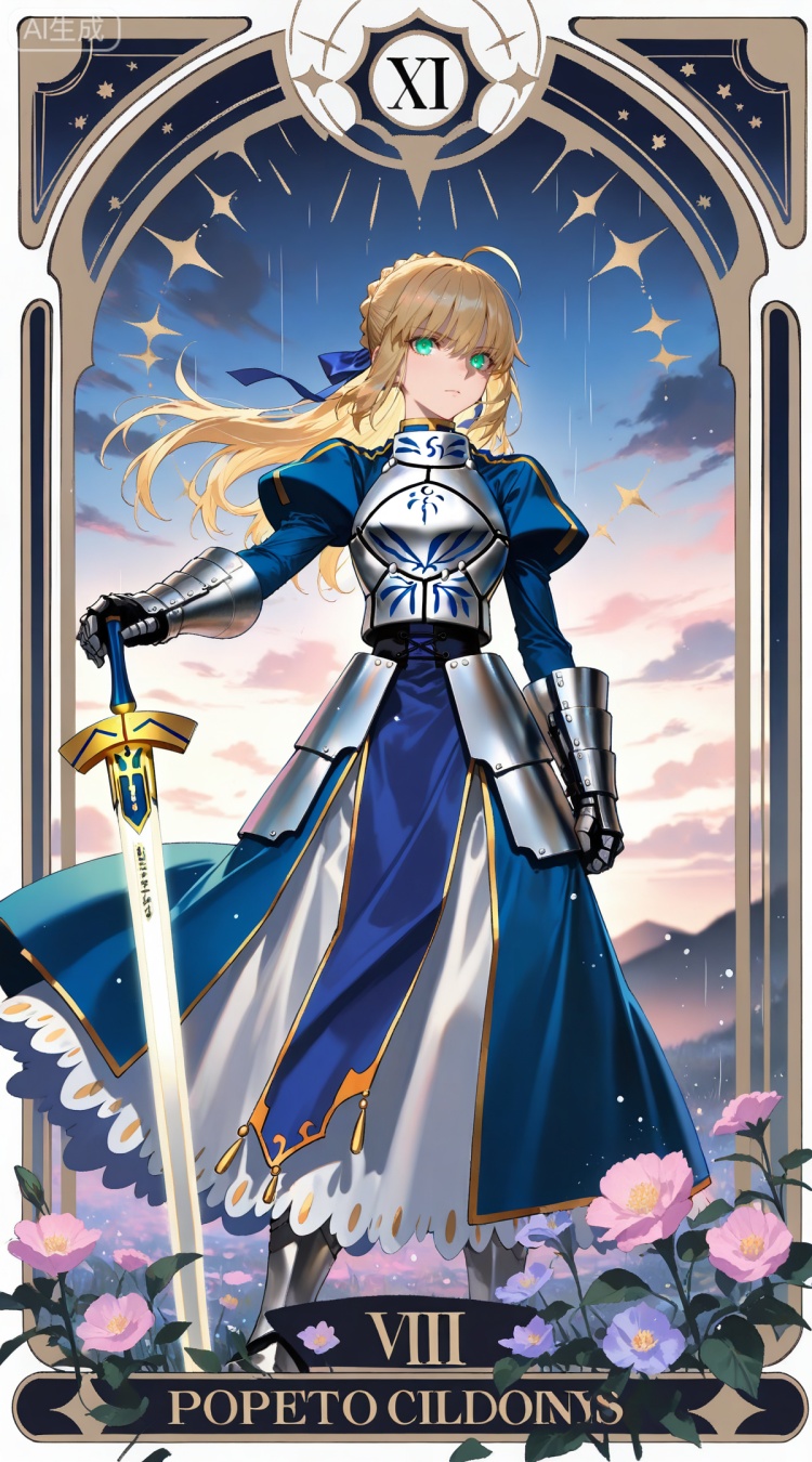 亚瑟王基础提示词(必填):artoria pendragon \(fate\), ahoge, blonde hair, aqua eyes, braided bun, french braid,