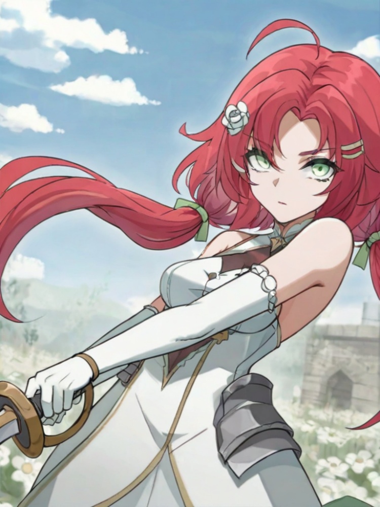 玫瑰 - 2026-03-24 09:40:22玫瑰LORA1 标记 原创 小小树懒Mar 24, 2026 2:11 AM 更新1 标记2026-03-24 09:40:22运行1下载充能运行1下载版本详情基底模型Illustrious 训练总轮数8触发词Long hair chest bangs big boobs simple background thighs gloves double tails jewelry very long hair green eyes red hair Elbow gloves white gloves 项目权限使用权限在吐司在线使用在 吐司 作为在线训练的底模使用时无需注明出处用于模型融合分享融合模型时使用不同的许可商用许可生成的内容用于商业用途作为生成服务来商用转售模型或出售融合模型相关帖子