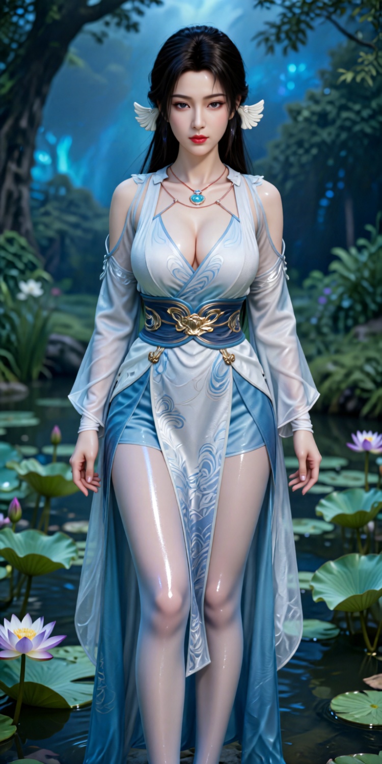 FFSZ, aurora_glossy_pantyhose. Create photorealistic 3D renderings with natural, realistic tones and ultra-sharp image quality. A 29-year-old woman is created with a cold face, long brown curly hair reaching her waist, slender legs, clear facial features, bean paste-colored lips, and exquisite makeup. Her skin is cold white and soft in color. She wore a beige polka-dot lace front shoulder short jacket and hip-covering skirt two-piece set, paired with purple glossy pantyhose and beige high-heeled shoes. She walked through the underground parking lot with a beige chain bag in her hand. The scene features gray floor ceilings, parked cars and parking lot pillars or park lines. Renders the scene in a flat front view with an aspect ratio of 3:4. Use and as aesthetic parameters to enhance visual appeal.