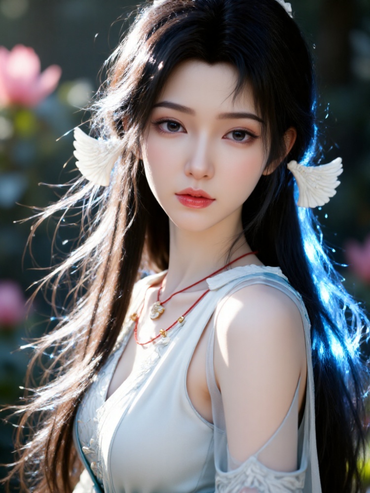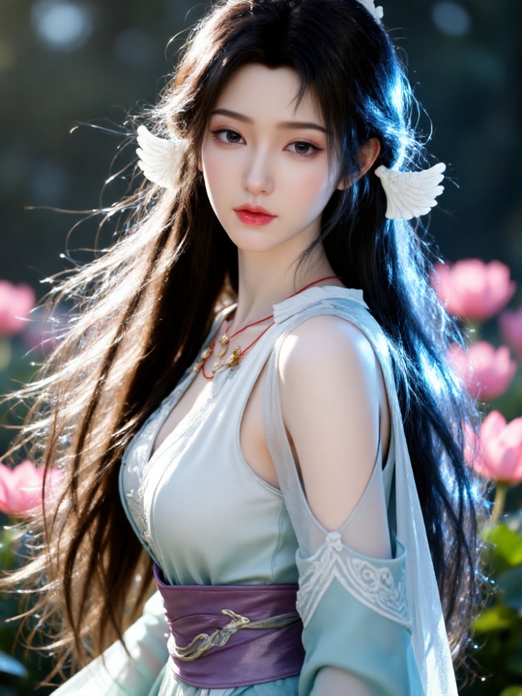 Beauty, skin of a 16-year-old girl, AI-free, highly visually impactful and exquisite wallpaper style, skin as white and delicate as porcelain, no signs of AI synthesis, huge breasts with clear contours, professional smile that is gentle and seductive, charming eyes looking directly at the camera, perfect figure (slender limbs + Tight waistline), the background is lush cochineal flowers, a pink ribbon of a girl in ancient costume fluttering in the wind, her long hair ribbon fluttering in the wind, comfortable and leisurely, bright spring, sense of story, layering, artistic conception, film photography, lens language, light color, the character is a beautiful girl with a handsome face, and the woman's skin is smooth and translucent. She has long black hair, and has a coquettish and shy temperament. Light and shadow highlight the subject, the background is beautiful, beauties in ancient costumes, national beauty, full-body close-ups, cool tones, high appearance, sense of sight, emotional atmosphere, sense of perspective, film grain texture, rich layers, freehand brushwork, hazy aesthetics, light aesthetics, lomo effect, high-end sense, masterpiece, white, clean, smooth, moist, delicate and clear skin. Extreme ultra-clear, illustration, thick paint, gentle temperament, OC rendering, ultra-high-definition picture quality, rich details, strong sense of refinement, extreme ultra-clear, extreme details, sense of atmosphere, narrow and long eyes with upward tail, clean and smooth picture style, showing an extremely clear smooth mirror texture style. 32K pixel compression processing allows all details to be clearly displayed.