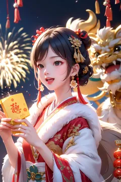 新年喜庆狮帽小女孩-2024-02-02 19:15:34