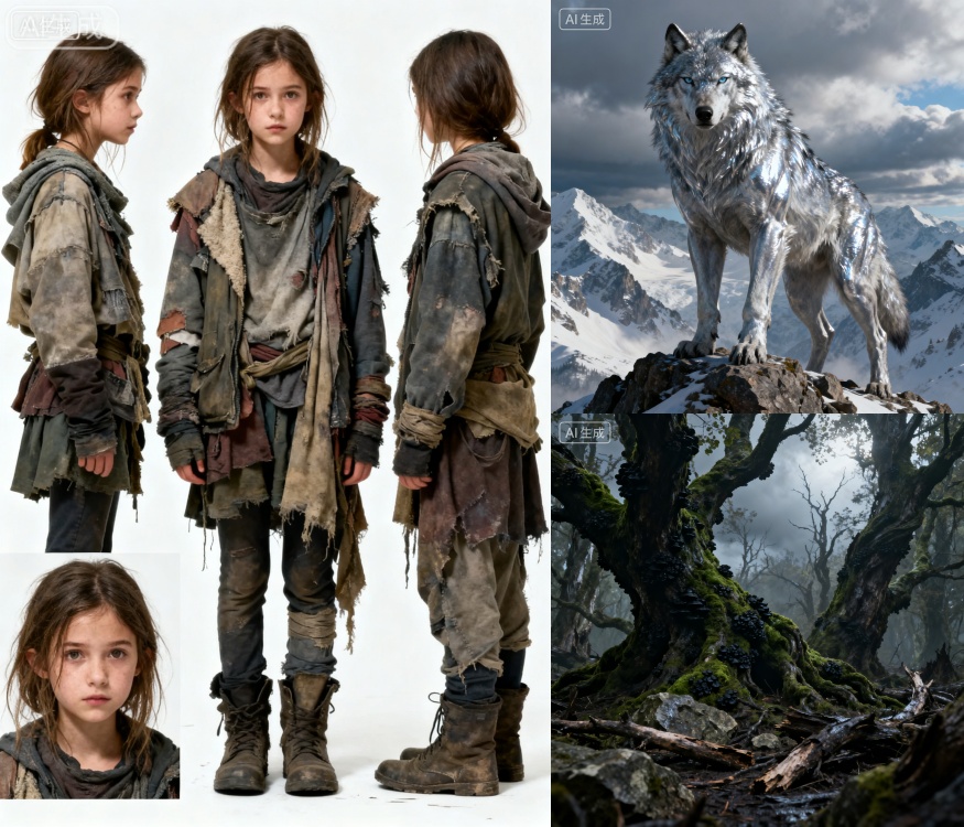3.人物描写 要求最好是有人物+神态+表情,比如上传的图像是少女三视图,即写少女(人物)+惋惜(神态)+痛哭(表情)/可描写动作(比如拿出一把小刀=仅能出现3张参考图中出现的内容。